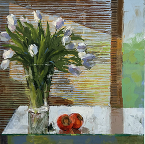 White Tulips & Persimmons with Bamboo Shade, 2024 |